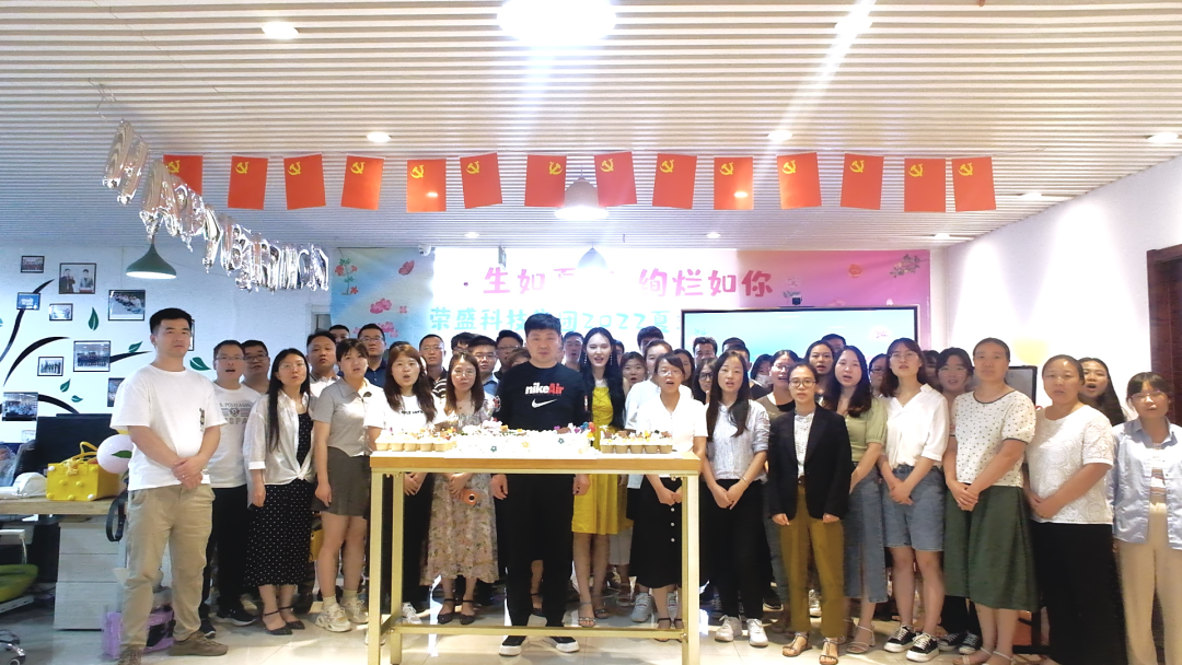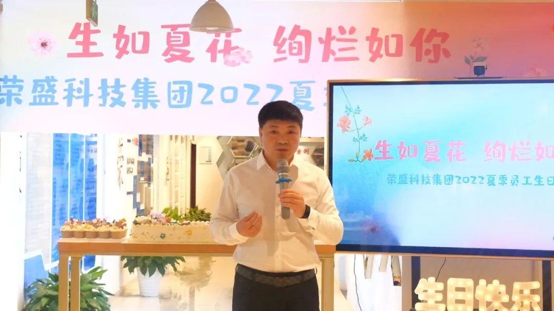 綠樹濃蔭聞蟬鳴,清風一夢花意濃。在這姹紫千紅、萬物崢嶸的盛夏時節,為營造溫馨和諧的工作環境和氛圍,讓每一位員工切實的感受到榮盛大家庭的溫馨,助力企業形成良好的向心力和凝聚力。7月2日下午,榮盛科技集團隆重舉辦了「生如夏花 絢爛如你——2022夏季員工生日會」。集團董事長楚科奇與來自各個部門的60余名壽星共聚一堂,共同見證這甜蜜的時刻。